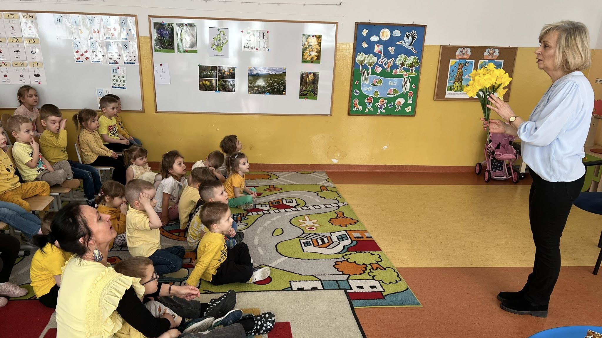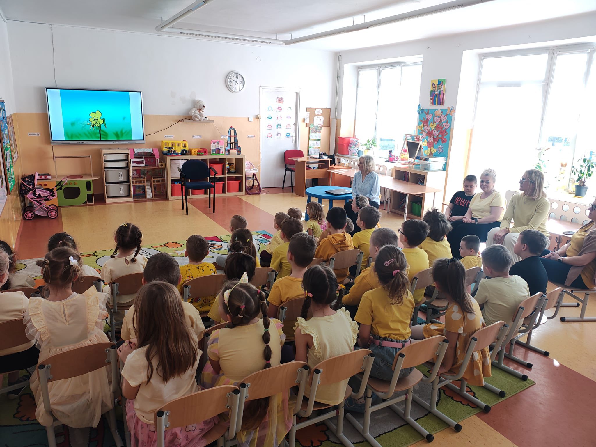 Spotkanie z Panią Iwonką z Hospicjum Homo- Homini im. Św. Brata Alberta w Jaworznie. Rozmowa na temat pracy w hospicjum. Dzieci dowiedziały się kto to jest wolontariusz oraz jak można pomagać chorym ludziom.